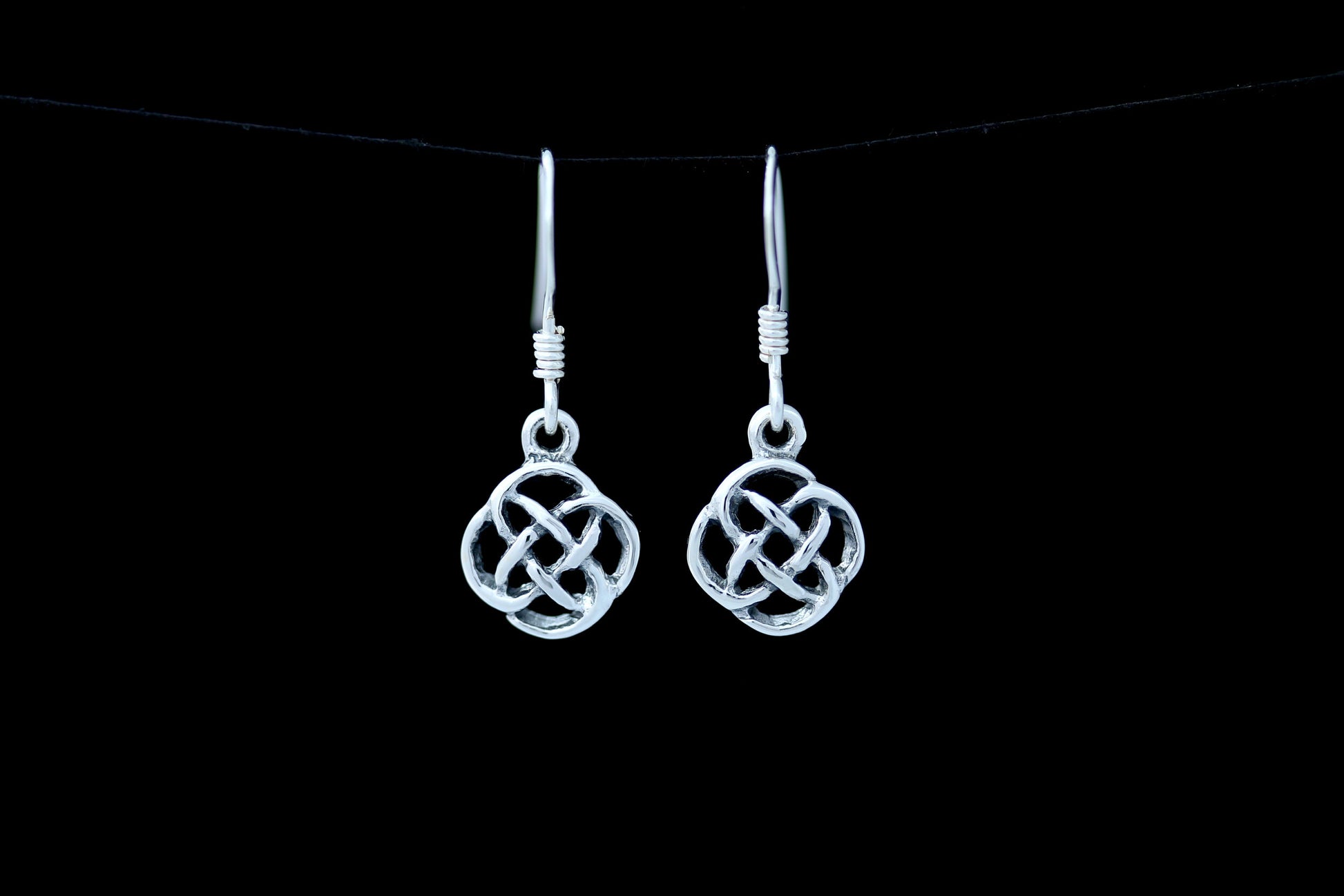 A Pair of Hallmarked 925 Sterling Silver Celtic Knot Earrings with a family love knot design.