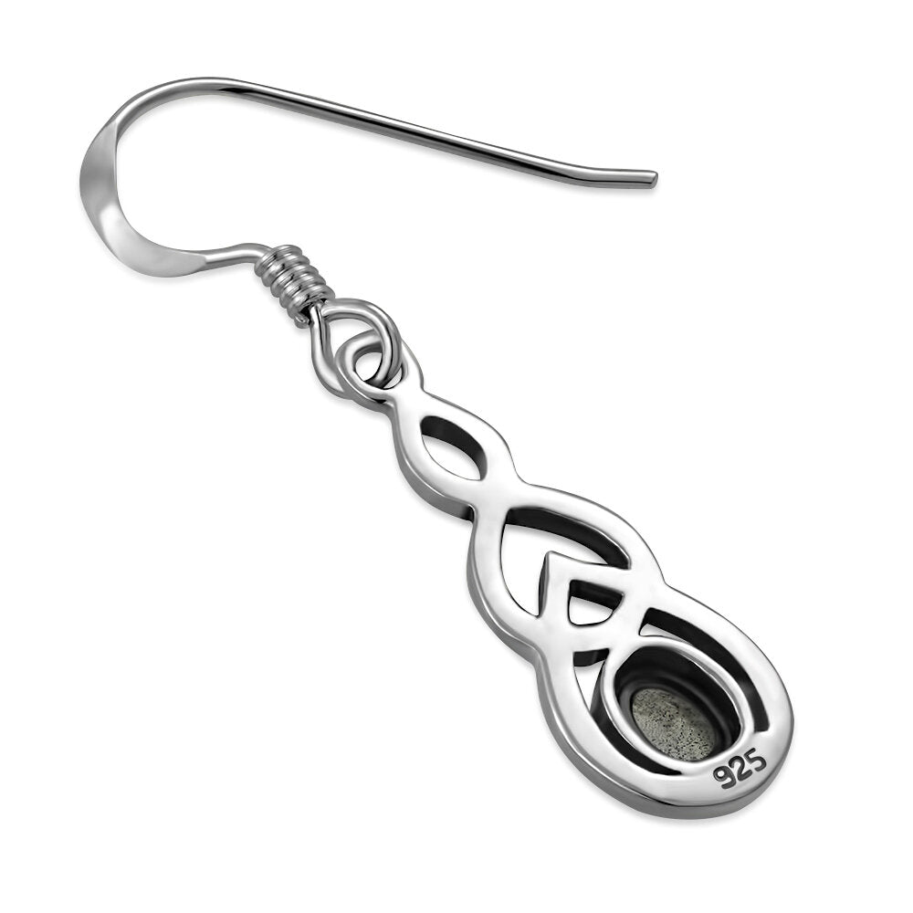 Celtic interlocked arms earrings with Labradorite set in hallmarked 925 Sterling Silver.