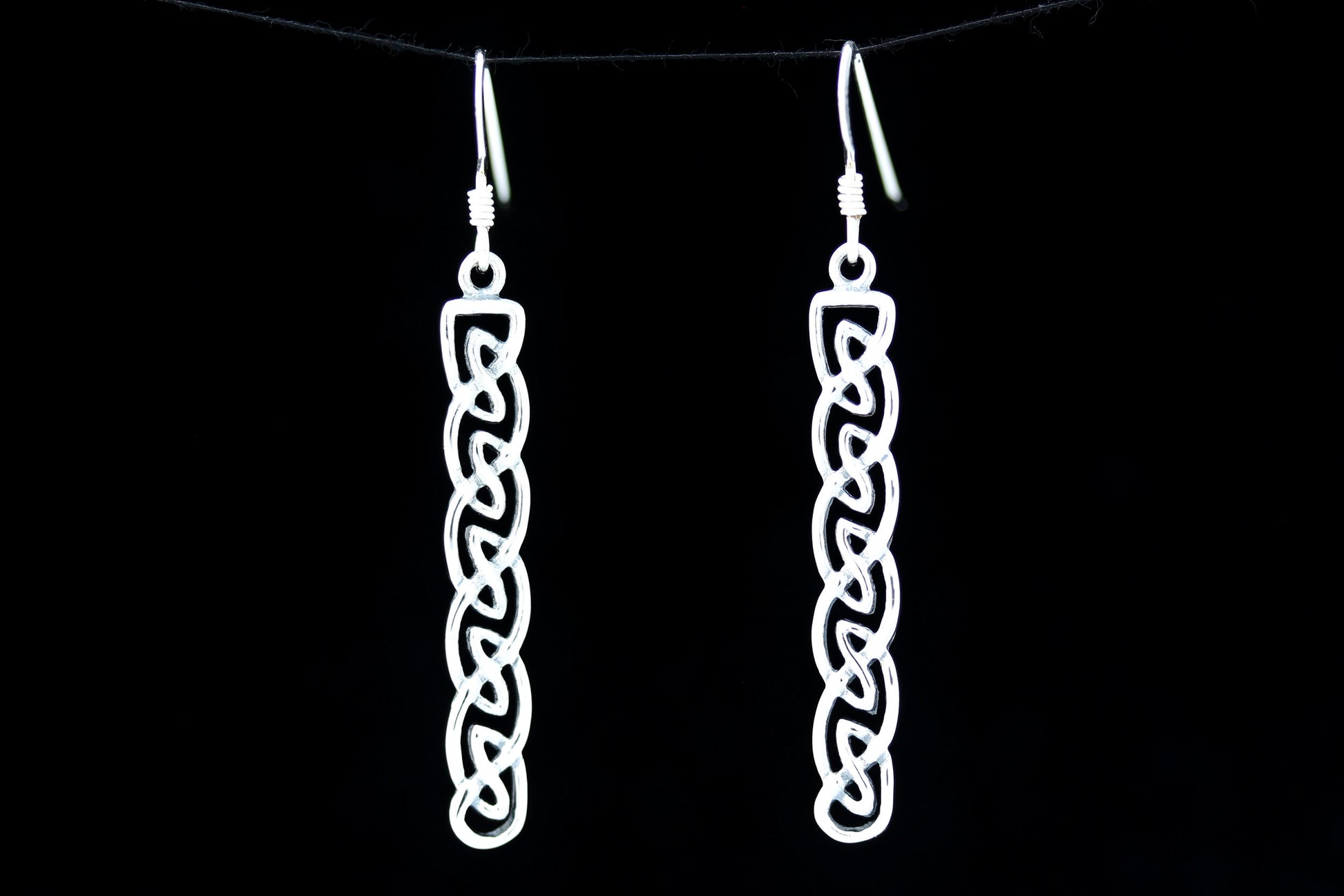Celtic long rectangular drop in hallmarked 925 Sterling Silver.