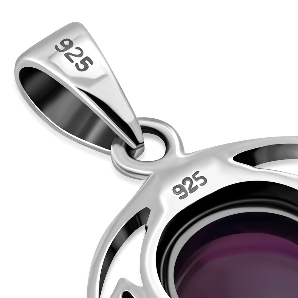Celtic Stone Pendant - Round Half Moon Knot with Garnet