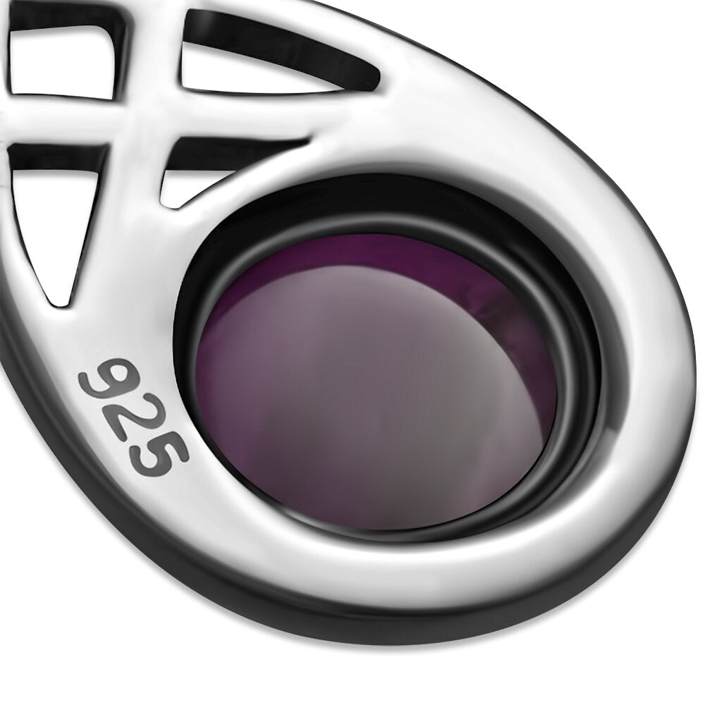Long looped Celtic pendant with Red Garnet set in hallmarked 925 Sterling Silver.