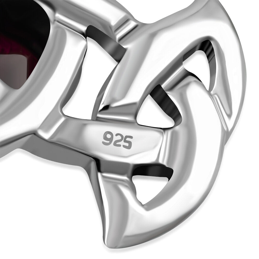 Celtic triple trinity pendant with round Red Garnet set in hallmarked 925 Sterling Silver.