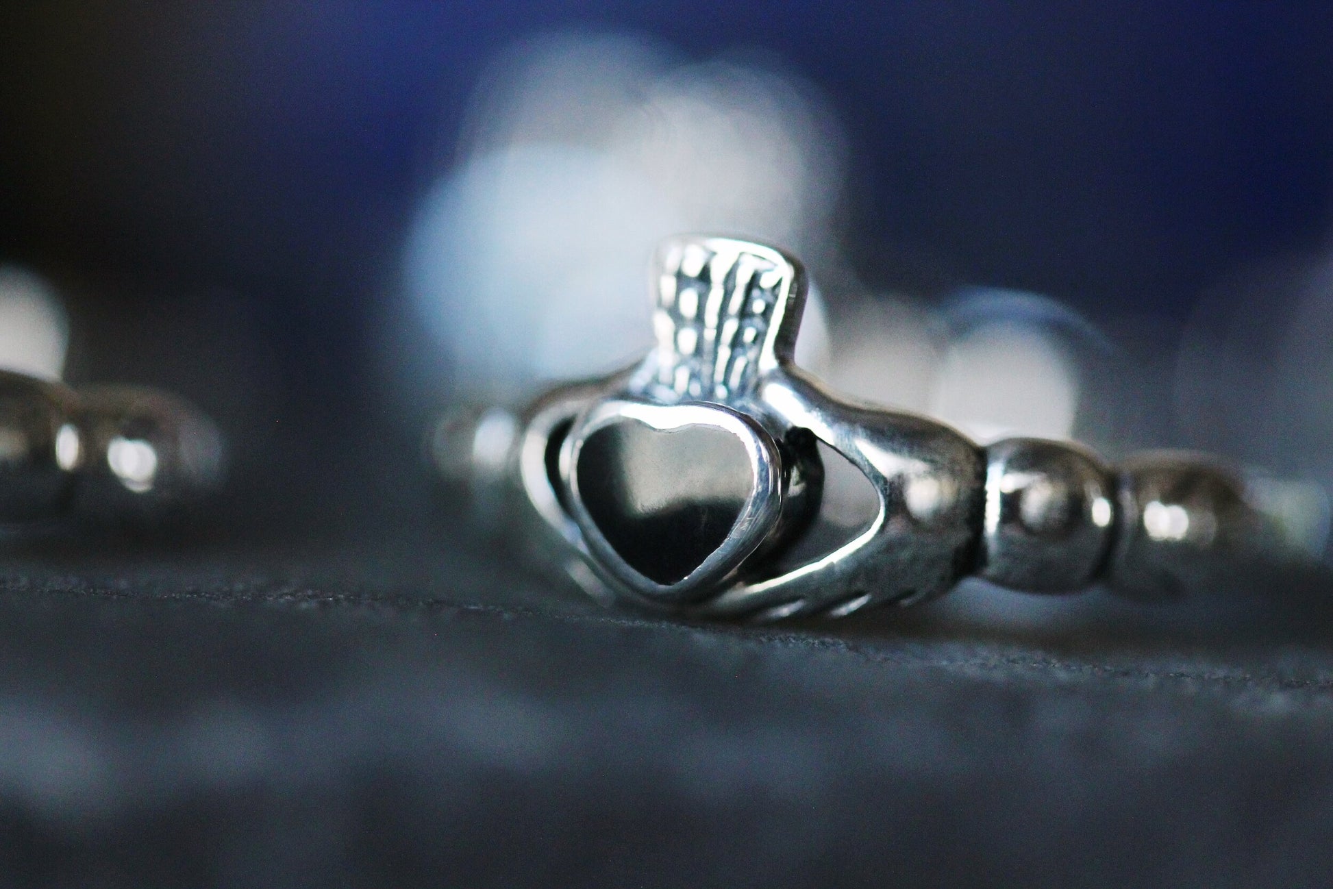 A traditional Irish relationship token, the Claddagh represents love (the heart), friendship (the hands), and loyalty (the crown). Wearing a Claddagh ring on your left hand with the tip of the heart towards your wrist shows your heart is taken.