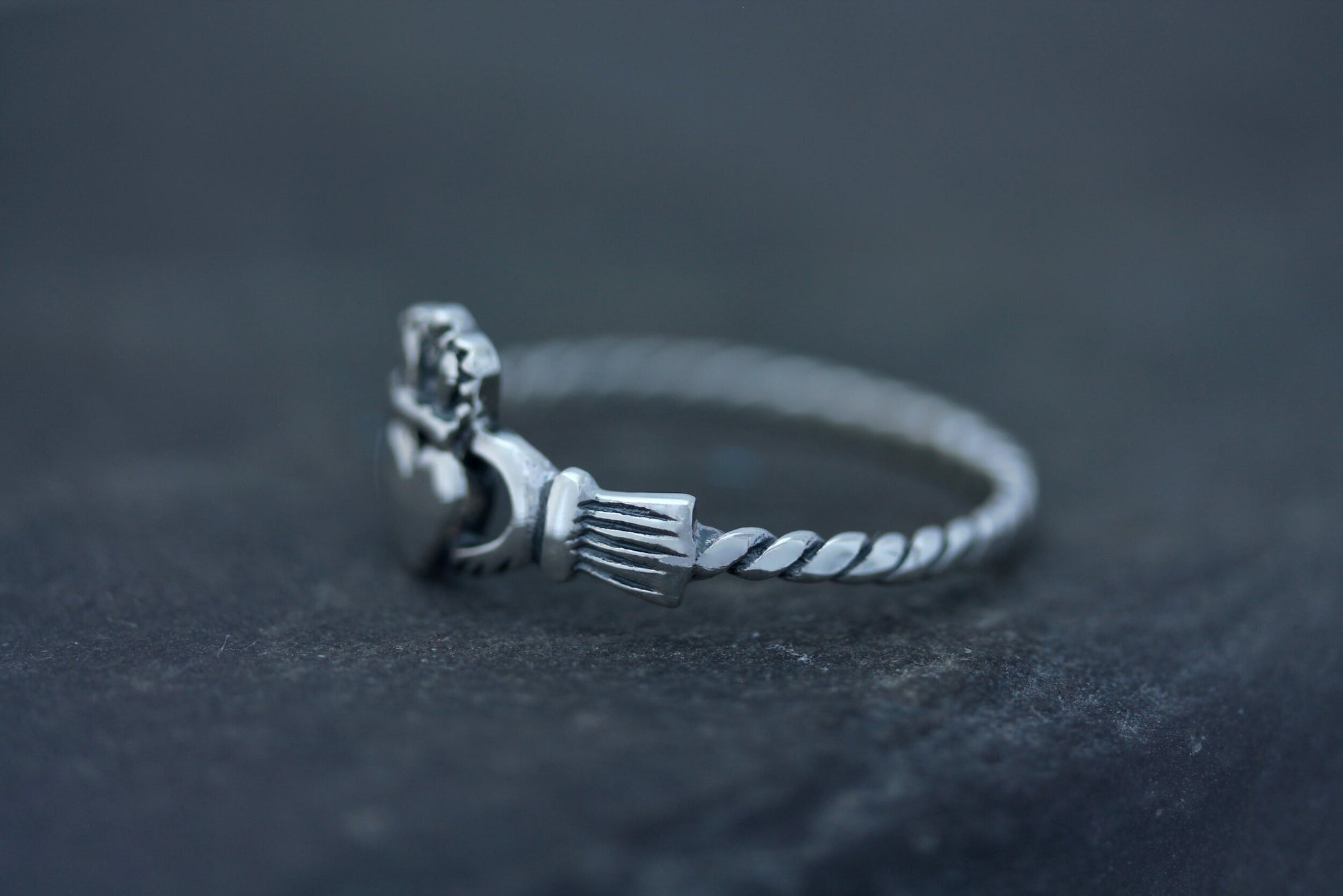 Claddagh ring with plaited band in hallmarked 925 Sterling Silver.