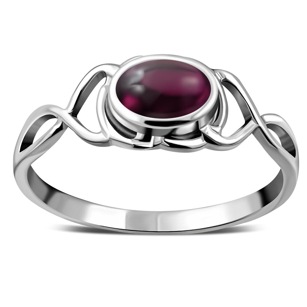 Contemporary Loop Ring filled with oval Red Garnet set in hallmarked 925 Sterling Silver.