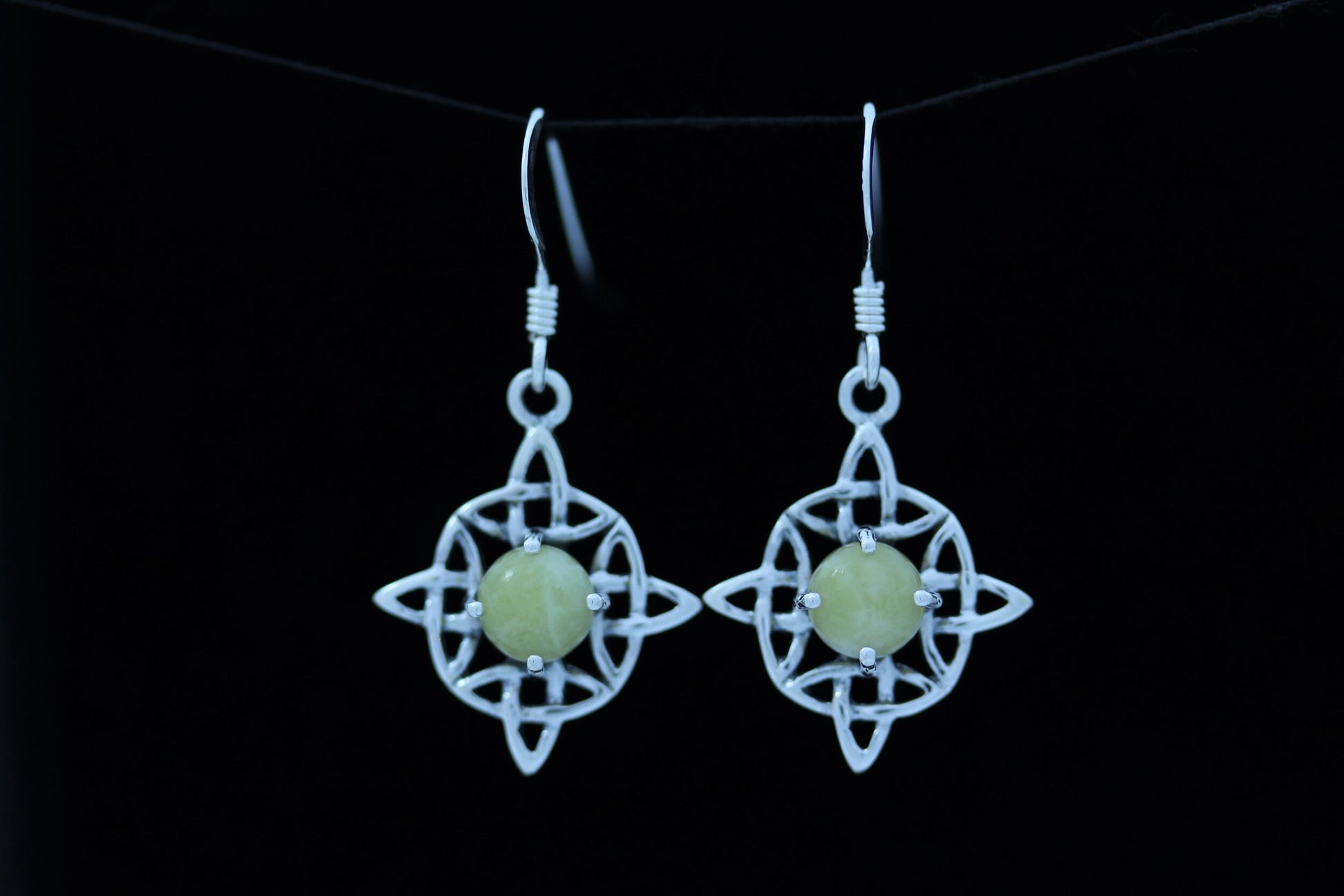 A Pair of Hallmarked 925 Sterling Silver Celtic Knot Earrings Set with Scottish Marble.