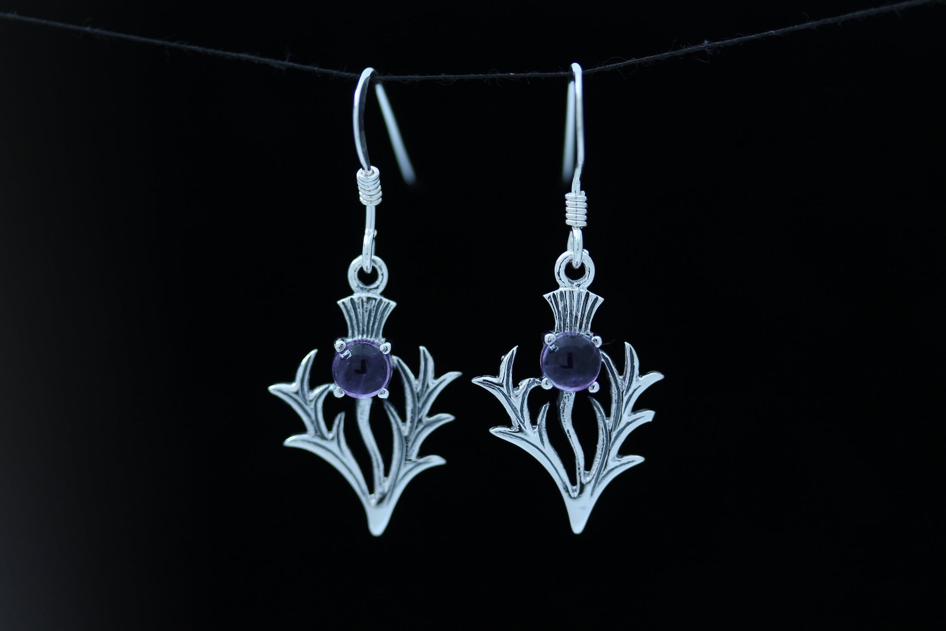 Scottish Thistle Earrings Amethyst - Spiky Leaf