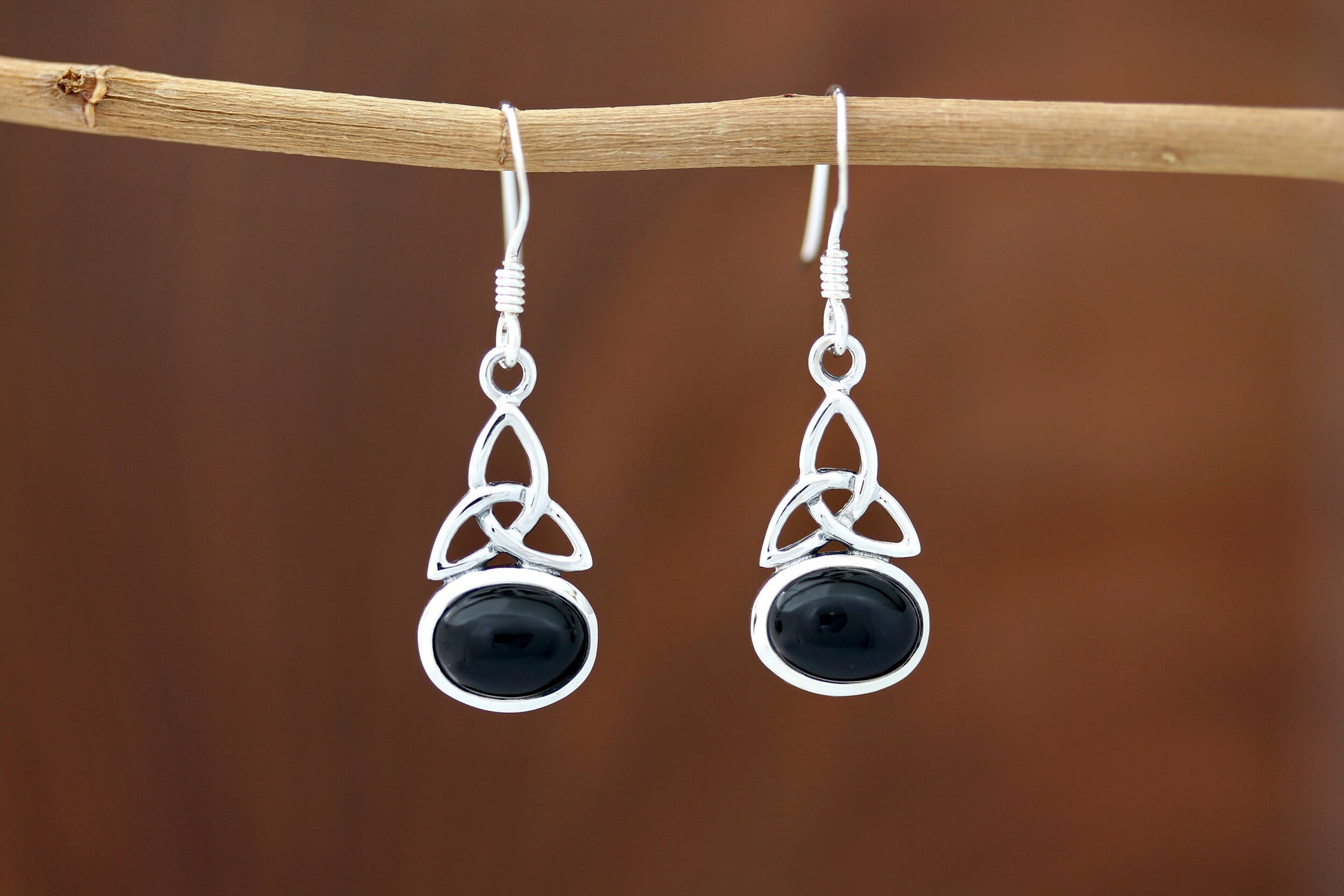 Simple Trinity Celtic earrings with Black Onyx set in hallmarked 925 Sterling Silver.